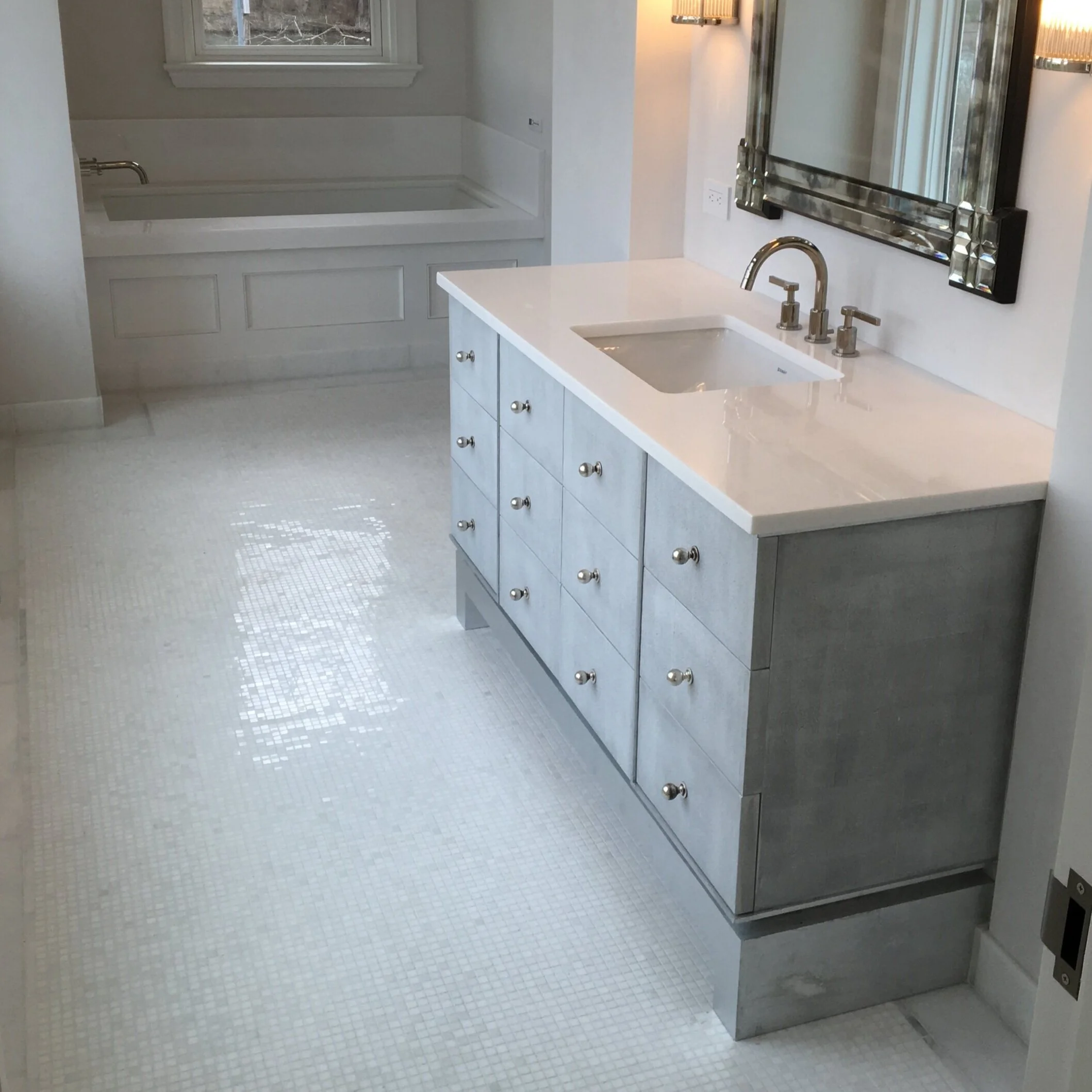 with custom made polished nickel framing