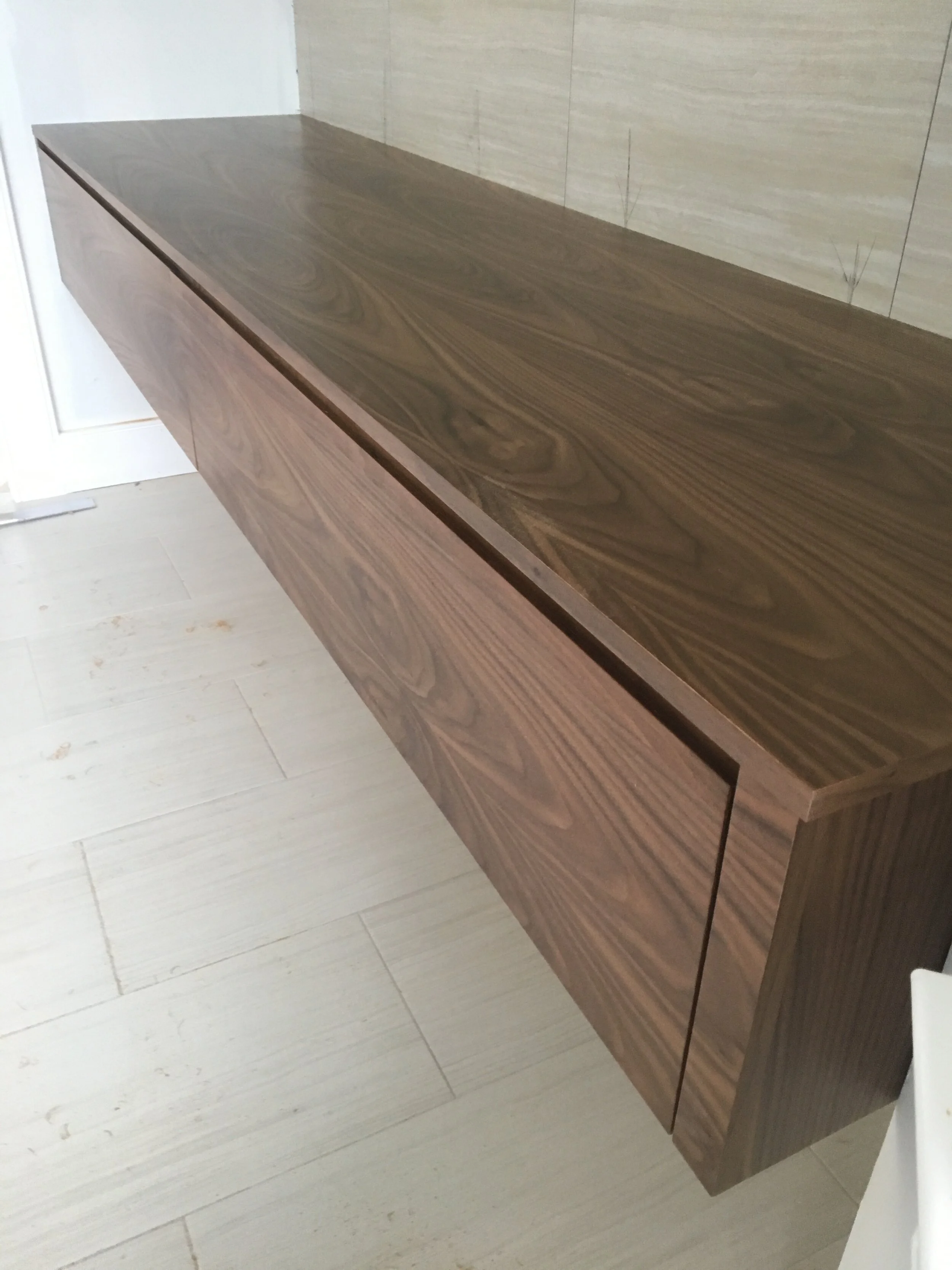 Floating walnut vanity